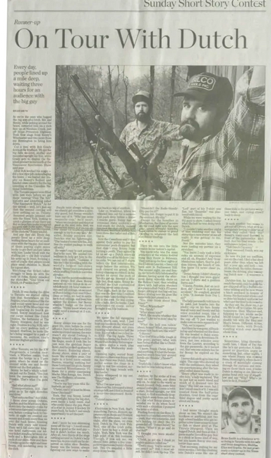 This twisted comic tale also won runner-up honours in The Toronto Star' competition. On Tour with Dutch is the story of two hard-drinking country boys who, after bagging Bigfoot during a hunting trip, attempt to turn their legendary trophy into untold riches.