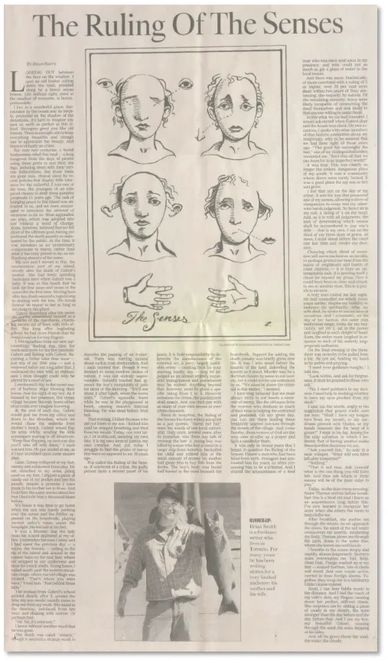 Among the 2000-plus entered, this story won runner-up honours in Canada's best-known short fiction competition, the Toronto Star Short Story Contest. It is a dark parable of a society that metes out justice by stripping criminals of one or more of their senses – the number of which is determined by the severity of the perpetrator's crime.